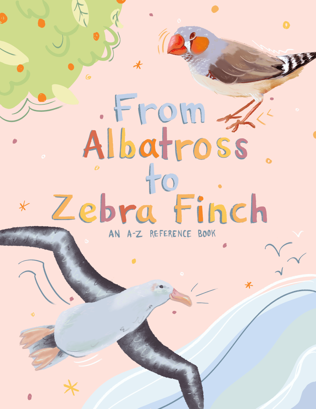 From Albatross to Zebra Finch is a portfolio book proposal for curious, nature-oriented young readers. Its intention is to be light and playful while accurate and informative, with delightful spot illustrations and plenty of room for fun facts. All digital, 2022.